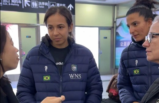 巴西女篮抵达长沙,现场学习中文